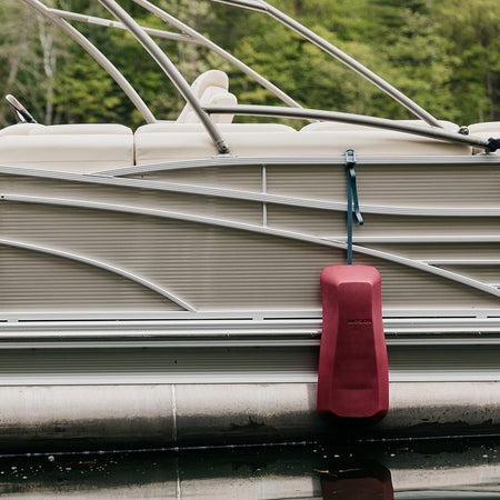 MAVEN Pontoon Fenders, like other fenders, are not designed to be attached while the boat is in motion. Many pontoon owners are accustomed to keeping their fenders permanently attached, letting them dangle over the edge, and flopping them in and out of the boat. At MISSION, we’ve never liked this look on our own toons—but it’s understandable because constantly adjusting fenders to the proper height is a struggle.